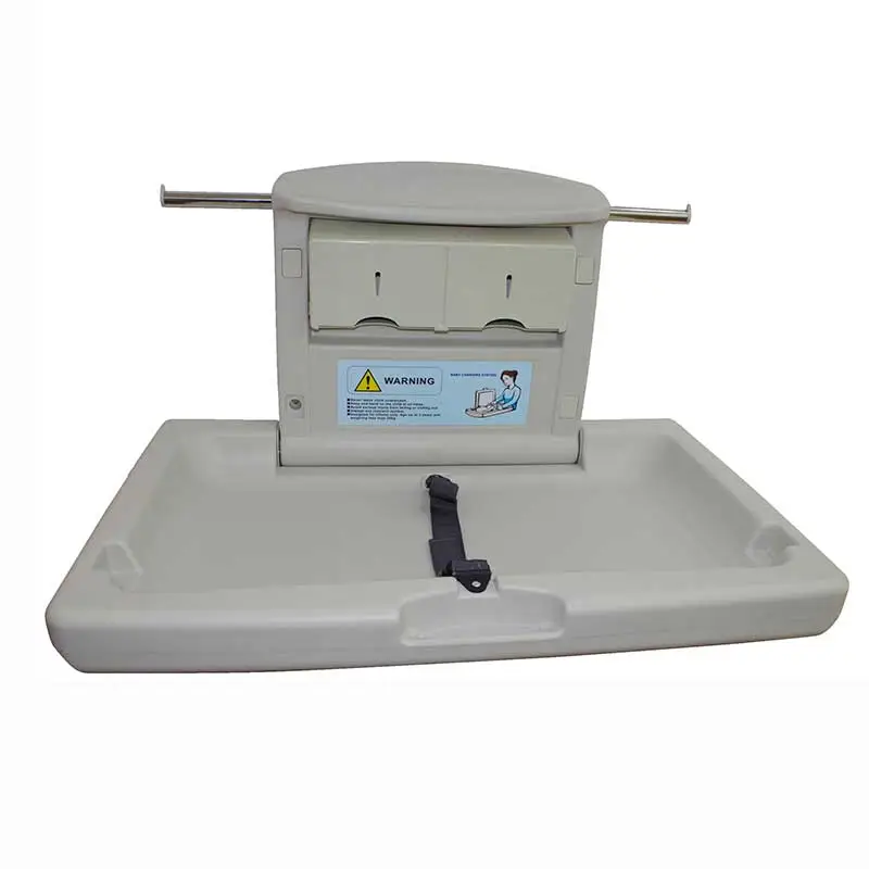 HOTEC horizontal safe, convenient foldable baby changing station, white finish with changing surface made of high density polyethylene. Strong durability, antimicrobial, smooth surface and easy to clean. Great bear weight to provide a safe place for you and your baby.