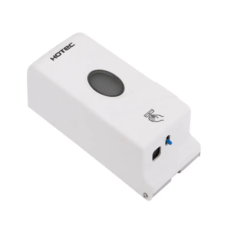 Hand-free Liquid Soap Dispenser. ABS white finish 3.0mm thickness. Long lasting strength, security lock with standard key to prevent stealing. Flashing LED for battery change.
