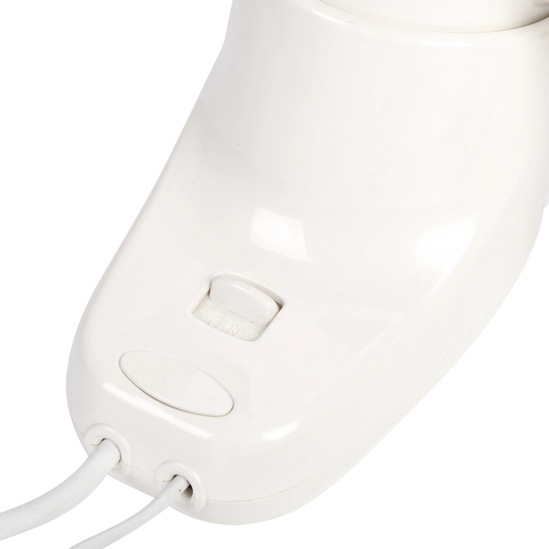 Classic white gun-like appearance, connected to the wall-mounted holder.