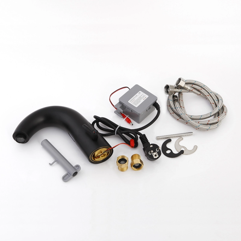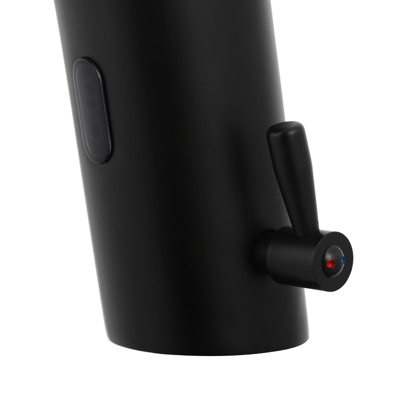 HOTEC adjustable faucet, sensor operated. Touchless, saving water, suitable for public use, keep people's health and clean. Made of brass with matte black finish, waterproof and anticorrosion for long-term use. Hot and cold water to fit different needs.