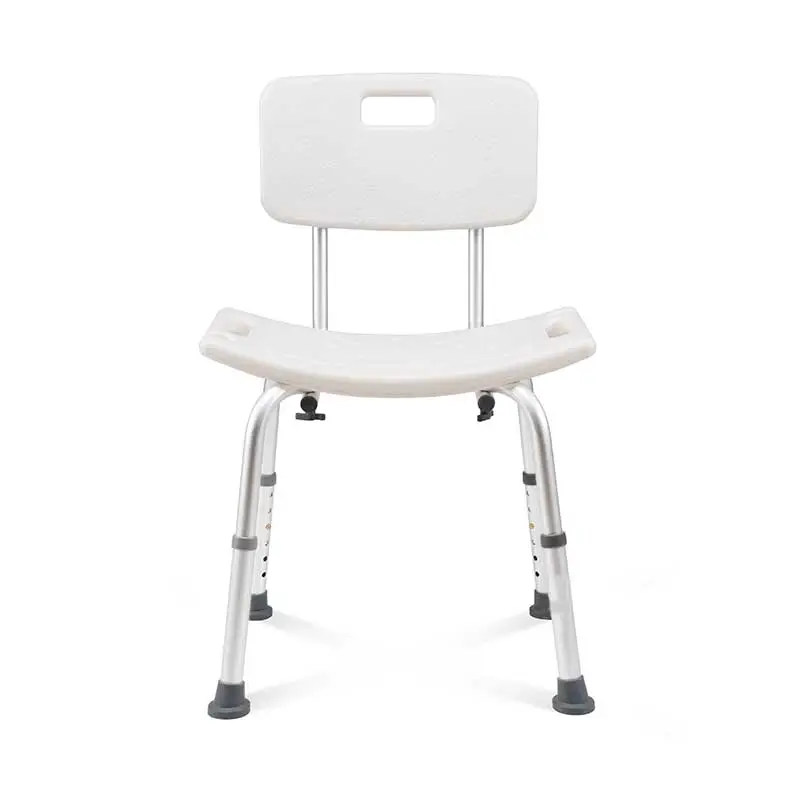 • Shower Chair with Back Rest. HDPE body with aluminum legs.