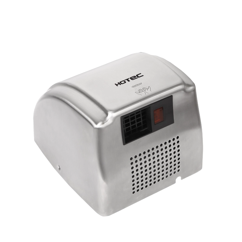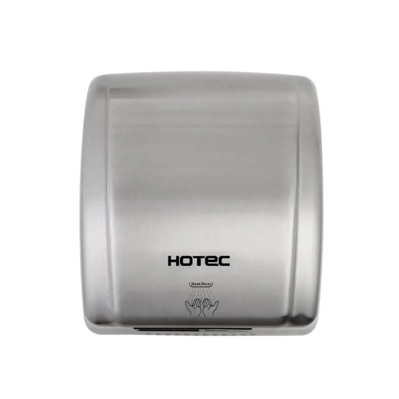 HOTEC Hand free hand dryer made of 304 stainless steel with satin finish. It is one-piece cover, durability and antirusting including a safety thermal cut-off. High speed brush motor, drying fast. Easy to install and maintenance.