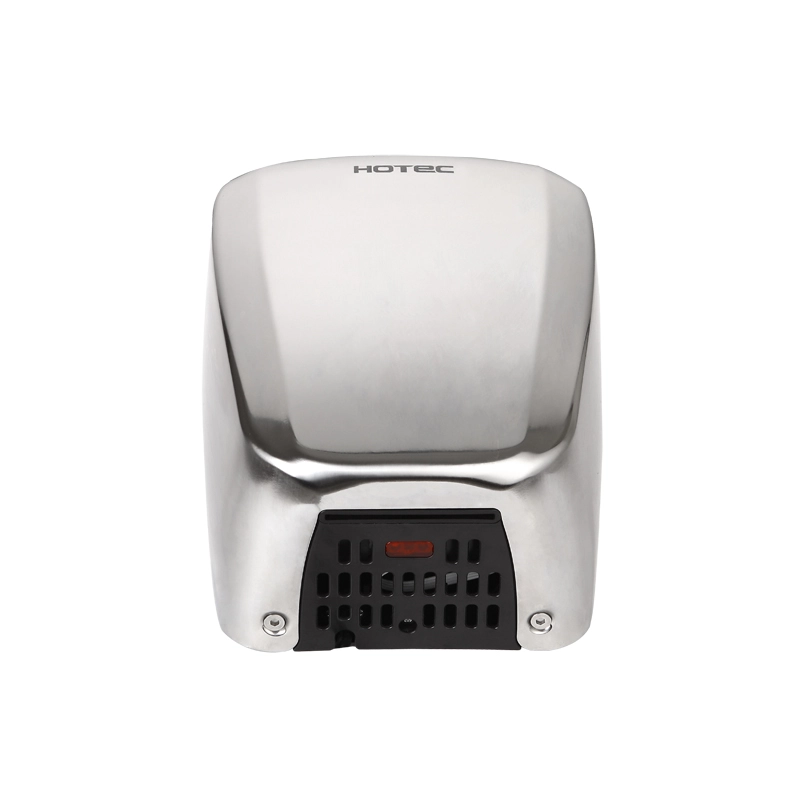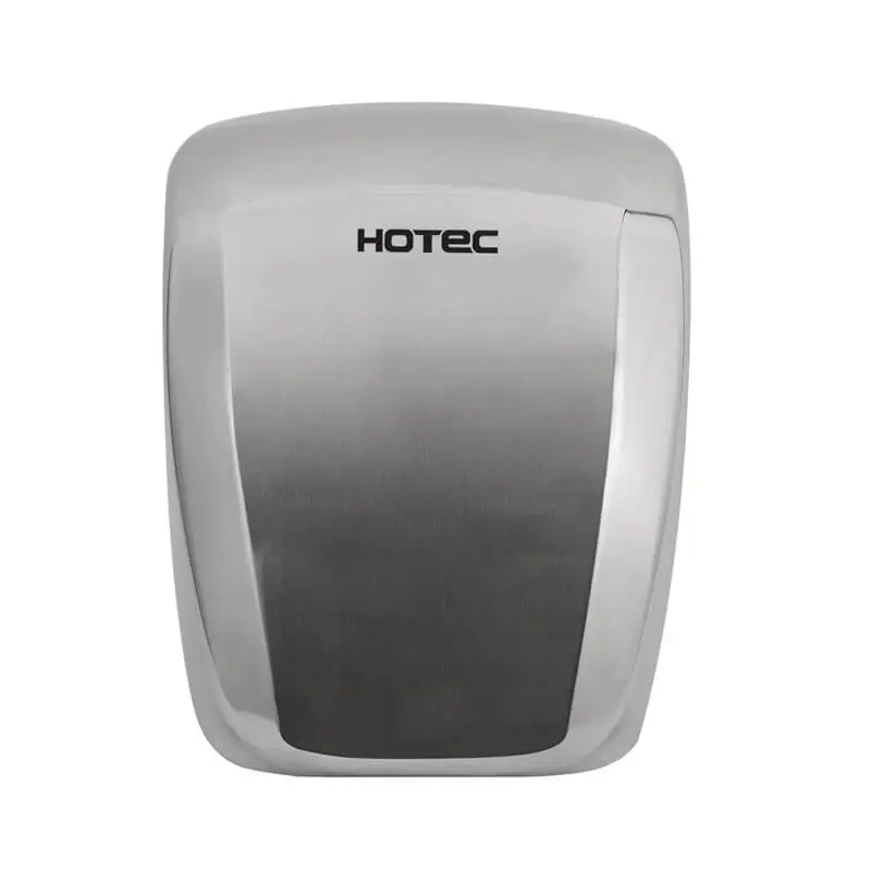 Automatic HOTEC hand dryer, one-piece cover body, durability vandalism proof. Made of steel with bright finish, high quality and long lasting use. Easy installation and maintenance. High speed brush motor incorporating a safety thermal cut-off.
