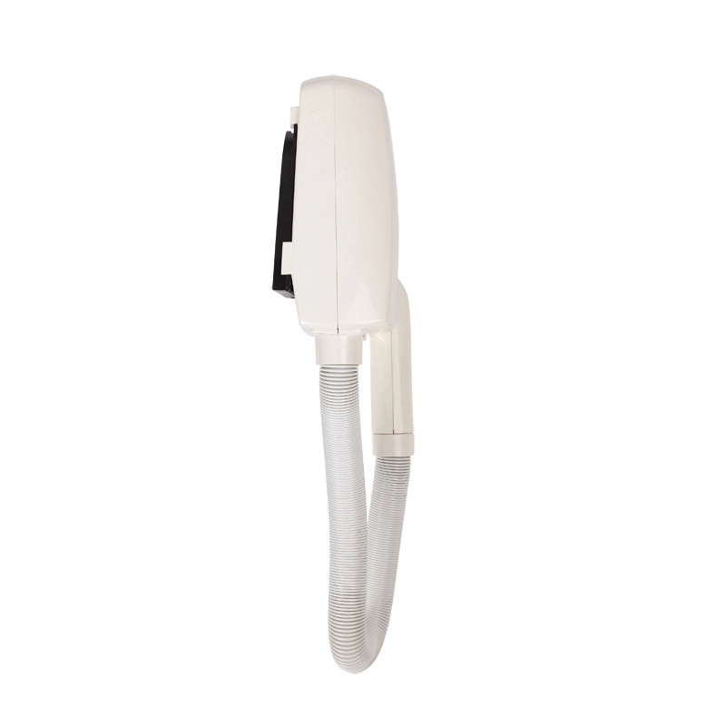 Classic white telephone-like appearance, connected to the wall-mounted holder, suitable for many buidings.